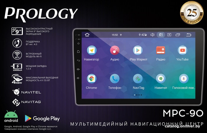 | Информация | Мультимедийный навигационный центр PROLOGY MPC-90 на операционной системе ANDROID® 9.0 — это универсальная автомагнитола для стандартного монтажного размера 2DIN* ( для установки потребуется дополнительная рамка), которая позволяет пользователю принимать радиостанции в диапазонах FM/AM волн, воспроизводить самые популярные типы медиафайлов, записанных на карты памяти USB/microSD. Головное устройство PROLOGY MPC-90 обеспечивает работу с навигационным программным обеспечением Навител Навигатор, управление мобильным телефоном через интерфейс Bluetooth, работу c Интернетом посредством подключения к сети Wi-Fi или сотовой сети 4G, а также передачу звука с внешних источников. Красивое графическое меню на широкоформатном сенсорном 9 дюймовом (228 мм) IPS экране, повышенной контрастности, с HD разрешением 1024x600 pix, красочный многостраничный интерфейс управления с большим выбором функций и Android приложений. Качественное, мощное звучание 4x55 Вт и широкие возможности аудио настроек - EQ 12 полос. Многоцветная подсветка клавиш, USB подключения, Bluetooth коннект с телефонами для громкой связи, набора номера и трансляции музыки. Wi-Fi и 4G подключение к интернету для использования онлайн-сервисов и приложений. Скачивание и установка Android приложений из официального магазина Google Play Market. Голосовые команды, управление касанием экрана и кнопками на руле. |