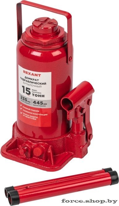 | Информация | Гидравлический бутылочный домкрат 15 т Rexant поднимает грузы массой до 15 тонн на высоту до 445 мм. Оптимален для автомобилей с большим клиренсом. Будет полезен автолюбителям при проведении технического обслуживания и ремонта, а также для профессионалов на СТО. Отличается плавностью хода, надежностью и жесткостью конструкции. Клапан безопасности не дает поднимать груз тяжелее 15 т, предохраняя домкрат от поломки. |