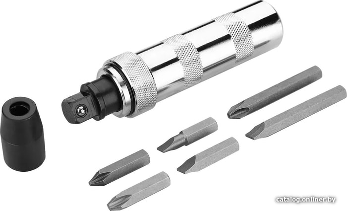 | Информация | Ударная отвертка с набором бит в кейсе DEKO TZ7 (7 предметов) служит для откручивания сильно закрученных винтов при помощи ударов по обратной стороне отвертки.Комплект поставляется в компактном пластиковом кейсе.В наборе идут биты 65мм:PH3,SL6 и 35мм:PH3,PH2,SL8,SL6. |
