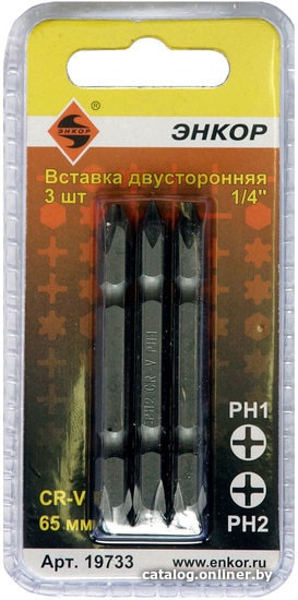 | Комплектация | Биты двусторонние PH1/PH2 - 65мм |