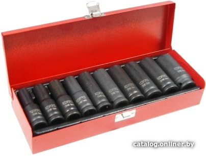 | Комплектация | Набор головок ударных глубоких, 6гр.: 10, 12-15, 17, 19, 21, 22, 24 мм |