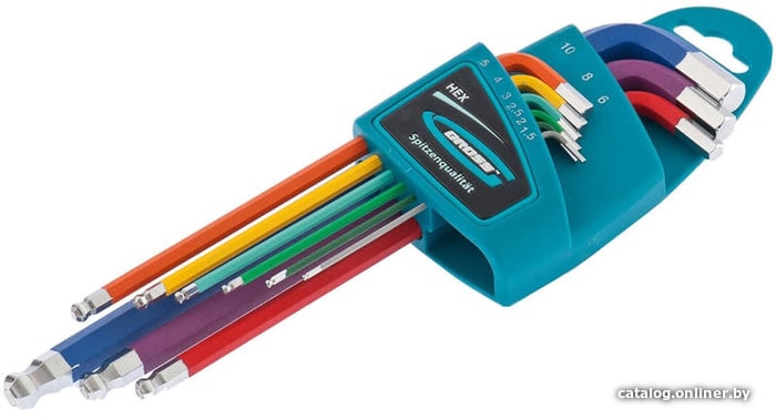 | Комплектация | Набор ключей имбусовых HEX, 1.5–10 мм, S2, магнит, экстра-длинные с шаром. |