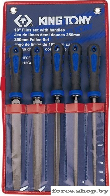 | Комплектация | Напильник с рукояткой, прямоугольного сечения, 250 мм; Напильник с рукояткой, полукруглого сечения, 250 мм; Напильник с рукояткой, круглого сечения, 250 мм; Напильник с рукояткой, треугольного сечения, 250 мм; Напильник с рукояткой, квадратного сечения, 250 мм; Чехол |