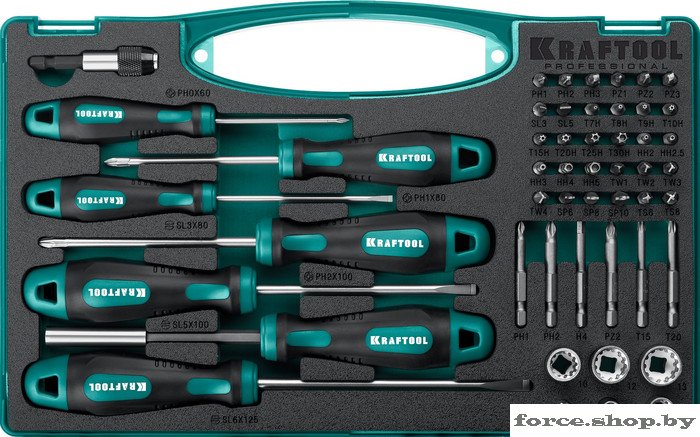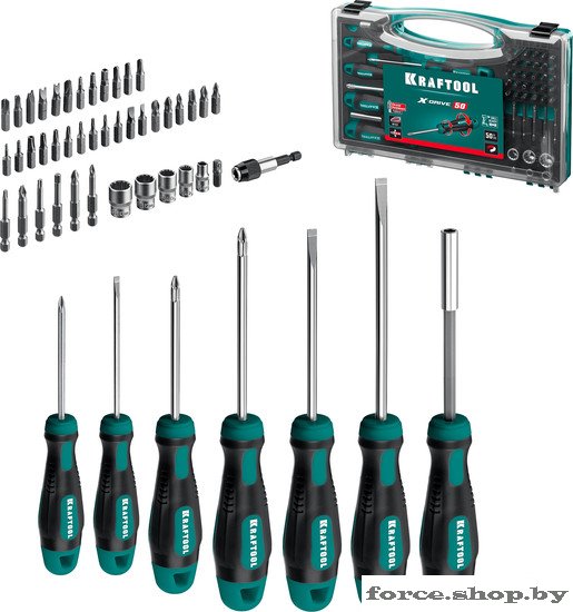 Набор отвертка с битами и головками KRAFTOOL 25815 (50 предметов)