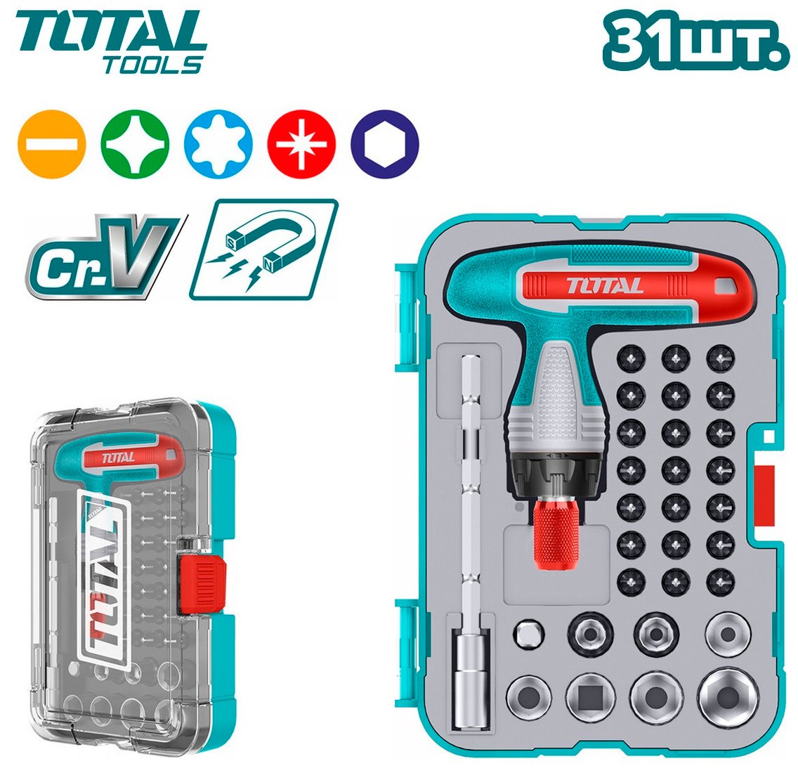 Набор отвертка с битами и головками Total TACSD30316 (31 предмет)