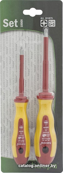 | Информация | Набор двухкомпонентных отверток PZ/FL 1, 2 предназначен для монтажа и демонтажа резьбовых соединений с различной комбинацией профиля (с прямым и крестовым сечением). Стержни выполнены из прочной стали, стойкой к нагрузкам. Подходит для использования в области электропроводки, так как обладает защитной изоляцией стержня. Двухкомпонентные рукоятки исключают проскальзывание инструмента в руке. Набор из двух отверток поставляется в блистере. |