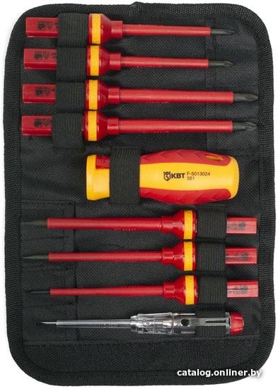 | Комплектация | - Диэлектрическая бита: шлиц 3.0х100- Диэлектрическая бита: шлиц 4.0х100- Диэлектрическая бита: шлиц 5.5х100- Диэлектрическая бита: PH1х80- Диэлектрическая бита: PH х100- Диэлектрическая бита: PZ1х80- Диэлектрическая бита: PZ2х100- Тестер напряжения 110–250 В- Диэлектрическая рукоятка для сменных бит |