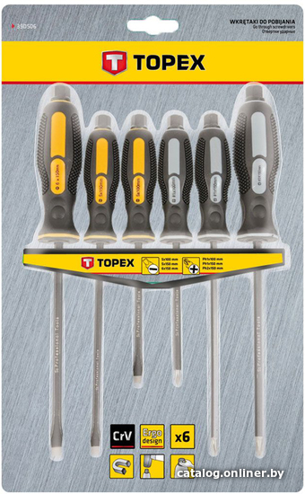 | Информация | Набор отверток для подбивания TOPEX, предназначены для затяжки и отвинчивания прикипевших, крепко затянутых винтов. Стержень каждой из шести отверток изготовлен из прочной хромомолибденовой стали, обеспечивающей долгий срок службы инструмента. Магнитное жало из закаленной стали облегчает работу с инструментом. Эргономичная пластмассовая рукоятка хорошо ложится в ладонь, что повышает комфорт работы. На пластмассовой подвеске, облегчающей хранение. Бренд TOPEX предназначен для домашних мастеров. |