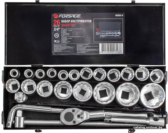Набор трещотка с головками FORSAGE F-68263-9 (26 предметов)