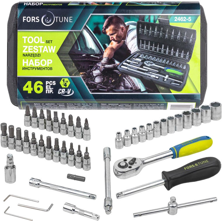Набор трещотка с головками и битами FORSandTUNE 2462-5 (46 предметов)