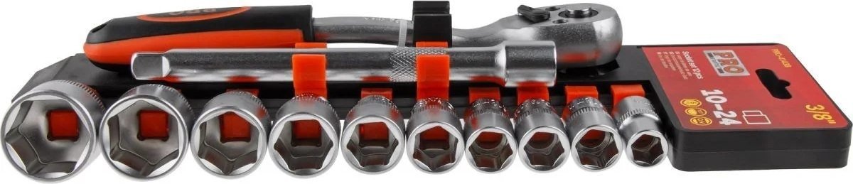 | Комплектация | Оснастка удлинители (1 шт.), головки (10 шт.) Головки торцевые (10 шт.) Торцевые головки 3/8" (10, 11, 12, 13, 14, 15, 17, 19, 22, 24 мм) |