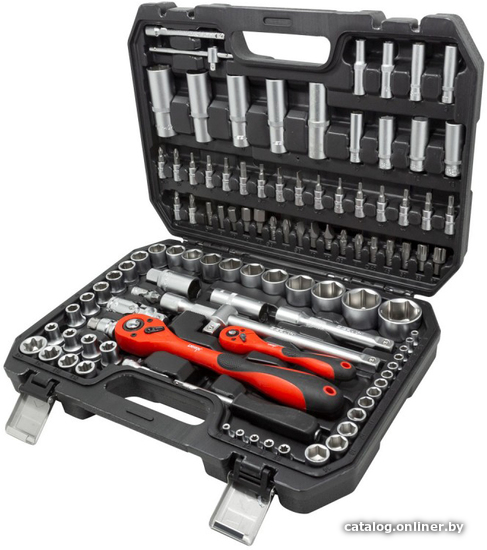 | Комплектация | Посадочный квадрат:1/2,1/4.Тип головок: 6 гранные, Е-профиль, короткие,глубокие.Комплектация: головки 1/4короткие:4, 4.5, 5, 5.5, 6-14 мм; головки 1/4глубокие: 6,7,8,9,10,1113 мм; головки 1/4Е-профиль короткие :Е4- Е8; головки-биты 1/4HEX:3- 6 мм; головки-биты 1/4TORX: T8,T10,T15,T20,T25,Т27,T30; головки-биты 1/4SL: 4, 5.5, 6,5; головки-биты 1/4РН : РН.1,РН.2; головки-биты 1/4PZ: PZ1,PZ2;трещотка 1/4; рукоятка 1/4; вороток Т-образный 1/4; удлинители 1/450,100 мм; кардан шарнирный 1/4; биты 5/16HEX :7,8,10,12,14 мм; бита 5/16TORX:Т40,Т45,Т50,Т55,Т60;бита 5/16SL :8,10,12;биты 5/16PH: PH.3,PH.4; биты 5/16PZ: PZ.3,PZ.4;головки1/2короткие :10,11,12,13,14,15,16,17,18,19,20,21,22, 24,27,30,32мм;головки 1/2глубокие: 14,15,17,19,22 мм; головки1/2Е-профиль короткие: Е10,Е11,Е12,Е14,Е16,Е18,Е20,Е24; головки свечные 1/2: 16, 21 мм; трещотка 1/2удлинители 1/2: 125, 250 мм; кардан шарнирный 1/2, адаптер 3/8(F)x1/2(M), битодержатель, ключи Г-обр. 6-гранные :1.5,2,2,5. |