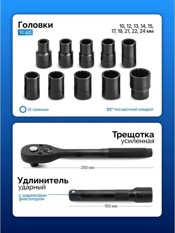 | Информация | - Набор ударных инструментов — это ваш надежный помощник в мире профессионального инструмента. С этим набором вы сможете уверенно справляться с любыми задачами, будь то ремонт или обслуживание автомобилей. - Прочность на высшем уровне: головки разработаны специально для работы с тяжелыми болтами и гайками, что обеспечивает отличную передачу ударной энергии. Это делает их идеальными для выполнения сложных задач. - Универсальность использования: набор подходит как для профессионалов, так и для автолюбителей, которые стремятся к качественному обслуживанию своих автомобилей. Вы сможете легко выполнять любые работы, не беспокоясь о качестве инструмента. - Долговечность гарантирована: закаленная сталь обеспечивает долгий срок службы даже при интенсивных нагрузках. Этот набор станет отличным вложением для тех, кто ценит надежность и качество в работе. - Не упустите возможность улучшить свои навыки и сделать работу более эффективной с помощью этого набора ударных инструментов! |