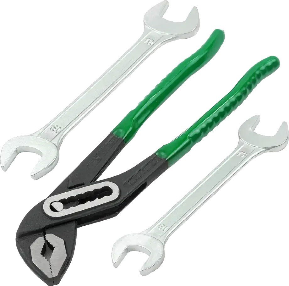 | Комплектация | клещи переставные, ключ рожковый (16 мм, 17 мм, 18 мм, 19 мм) |