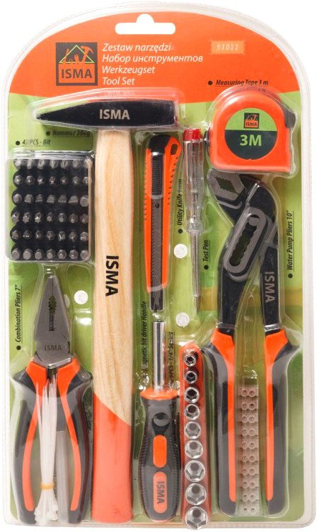| Комплектация | плоскогубцы комбинированные 7"; ключ газовый 10"; рулетка 3 м; молоток (300 г); биты PH0, PH1, PH2, PH2, PH3; SP4, SP6; Y1, Y2, Y3, Y4; C1; T10, T15, T20, T25, T27, T30, T40; SL3, SL4, SL5, SL5.5, SL6, SL7; PZ0, PZ1, PZ2, PZ2, PZ3, S0, S1, S2, S3; H2, H2.5, H3, H4, H5, H5.5, H6 мм; AD (42 шт.); рукоятка-битодержатель магнитный; индикаторная отвёртка 100–500 V; нож канцелярский 9 мм; лезвия для ножа 9 мм (10 шт.); головки 1/4": 5, 6, 7, 8, 9, 10, 11, 12, 13 мм; хомуты пластиковые 2.0?100 мм (23 шт.); клеммы соединительные H6" (10 шт.). |