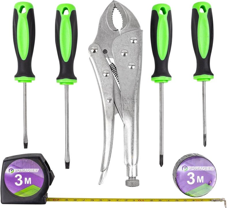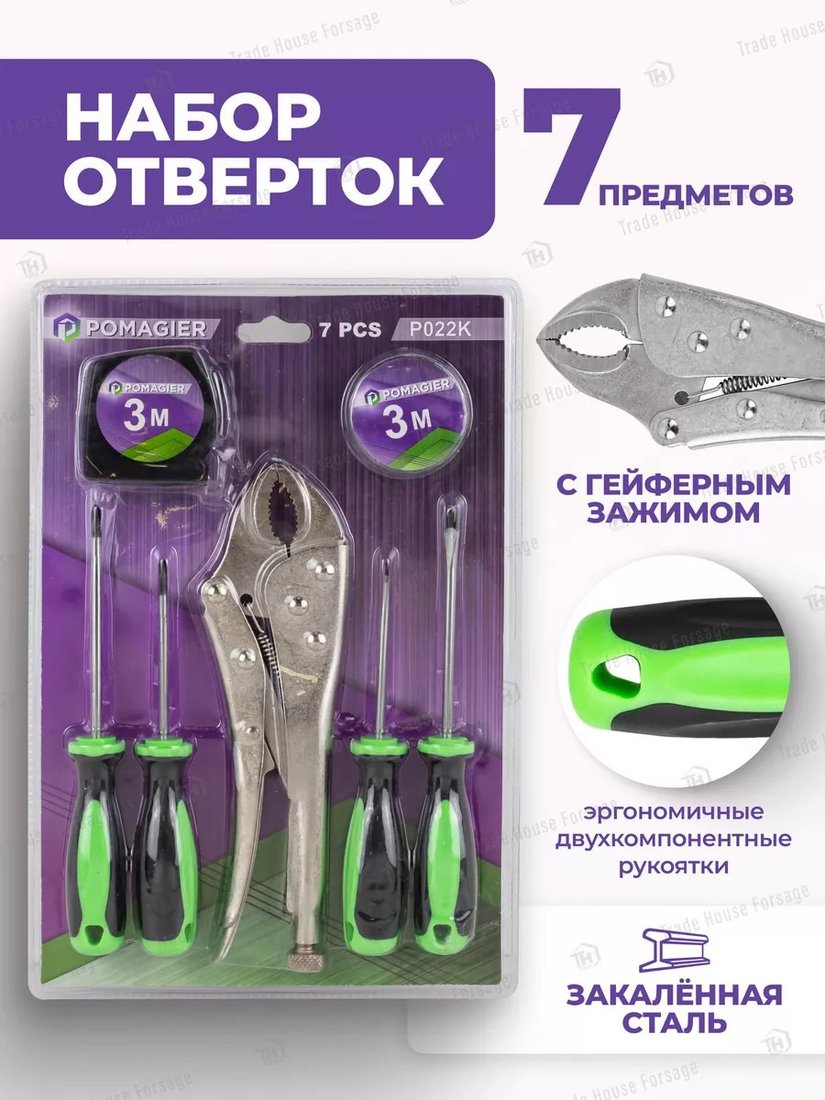 | Информация | - Универсальный набор инструментов на 7 предметов от бренда Помощник — идеальный выбор для выполнения различных строительных и монтажных работ в вашем доме, на даче или в гараже. Этот комплект включает в себя все необходимое для мелкого ремонта и профессиональных задач. - В набор входят 4 отвертки: две шлицевые (SL4.5?100 мм и SL3.8?75 мм) и две крестовые (PH4.5?100 мм и PH3.8?75 мм). Стержни отверток изготовлены из высококачественной стали S2, что обеспечивает их прочность и долговечность. Эргономичные ручки гарантируют комфортное использование, даже при длительной работе. - Также в комплекте вы найдете гейферный зажим длиной 250 мм с максимальным захватом 25 мм, выполненный из прочной хромованадиевой стали (CrV). Этот многофункциональный инструмент позволяет надежно фиксировать различные предметы, обеспечивая удобство и надежность в работе. - Изолента ПВХ размером 3 м?18 мм идеально подходит для изоляции электрических соединений, временного крепления или маркировки. А рулетка длиной 3 метра поможет вам точно измерять расстояния и размеры. - Набор отверток для дома POMAGIER станет незаменимым помощником в любых задачах, от мелкого ремонта до серьезных строительных работ. Удобная упаковка в блистере обеспечивает легкость хранения и транспортировки. - Не упустите возможность сделать свой ремонт более эффективным с этим универсальным набором инструментов! |