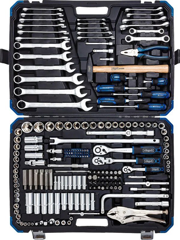 | Информация | - Набор автомобильных инструментов — идеальный выбор для любых ремонтных работ. Состоящий из 202 предметов, он обеспечит вас всем необходимым для успешного выполнения задач в автомобильном сервисе, гараже или домашней мастерской. - В комплект входят головки различных размеров на три посадочных квадрата 1/4", 3/8" и 1/2". Типы головок включают 6-гранные, Е-профиль, короткие и глубокие, а также разнообразные биты и ключи, что позволяет работать с различными типами крепежей. Каждый инструмент в наборе гарантирует надежность и долговечность благодаря высокому качеству материалов и тщательной обработке. - Все инструменты изготовлены из прочной хромованадиевой стали CR-V, что обеспечивает высокую долговечность и устойчивость при интенсивном использовании. С таким набором вы сможете легко и быстро выполнять ремонтные работы любой сложности. - Независимо от того, являетесь ли вы профессиональным автомехаником или просто любителем, этот набор станет незаменимым помощником в вашем арсенале инструментов. Комплектация включает все необходимые головки, биты, трещотки, удлинители, ключи, отвертки, плоскогубцы, молоток и многое другое. - Все инструменты удобно расположены в прочном пластиковом кейсе с металлическими защелками и дополнительными фиксирующими защелками по бокам, что обеспечивает удобство хранения и транспортировки. - Не упустите возможность сделать свои ремонтные работы более эффективными с этим многофункциональным набором! |