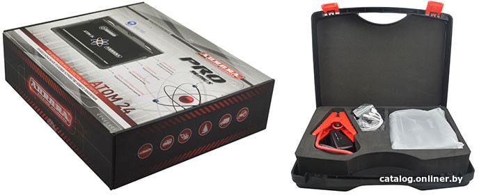 | Информация | ATOM 24 предназначен для запуска двигателей мотоциклов, автомобилей, генераторов и прочих устройств для питания которых используется 12В аккумуляторы. Мощности устройства хватит для запуска практически любых бензиновых и дизельных двигателей легковых машин. С помощью АТОМ 24 можно заряжать и питать мобильные телефоны и планшеты, энергоёмкое автомобильное оборудование (компрессоры, автохолодильники и т.д.). Благодаря малому весу и компактным габаритам ATOM 24 можно использовать в походе, в командировке или на рыбалке. Все выходы устройства защищены резиновыми заглушками. Класс влагозащищенности - IP 64.Комплектация:- интеллектуальный кабель с разъёмом CP1000, для пуска автомобиля (длинна кабеля 250мм, сечение 6.5мм2)- сетевой адаптер 15В, 1А- кабель для зарядки от прикуривателя автомобиля,- USB кабель с комплектом переходников |