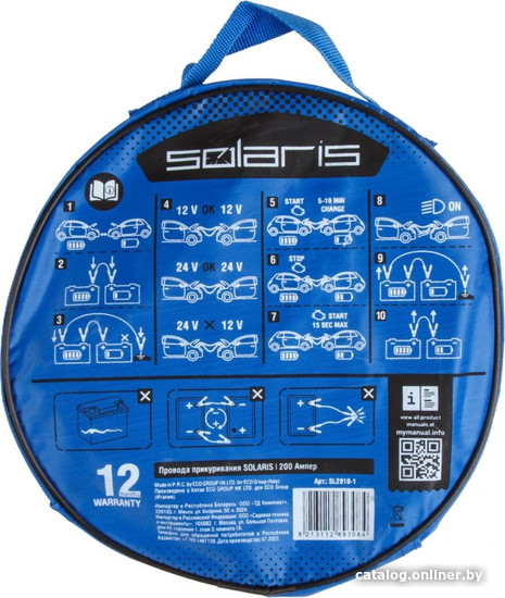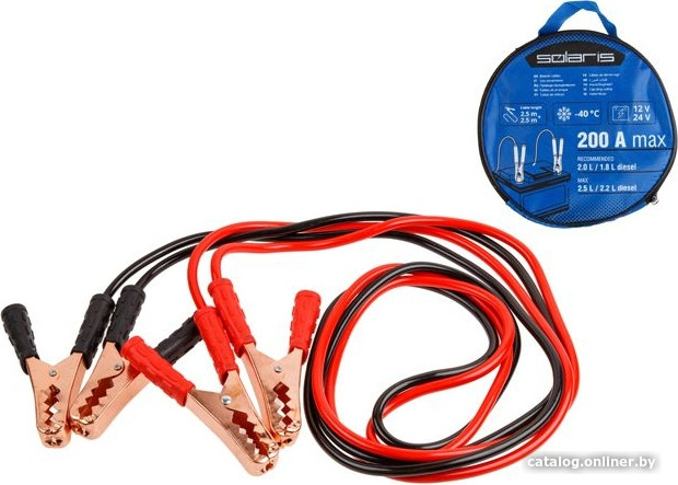 | Информация | ? Провода крепятся на клеммы с помощью изолированных зажимов типа «крокодил» для надежного контакта. ? Изолированы термопластичной резиной, что позволяет им легко гнуться и сохранять эластичность до -40°С. ? Длина проводов позволяет дотянуться до аккумулятора автомобиля «донора» даже в труднодоступных местах. ? Можно использовать для снегоходов и мотоциклов с разряженной батареей. ? Предназначены для пуска двигателя автомобиля с разряженной аккумуляторной батареей методом подачи стартового тока от другого автомобиля или запасного заряженного аккумулятора. |