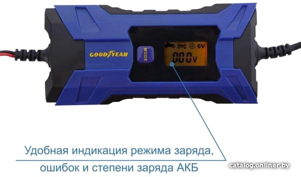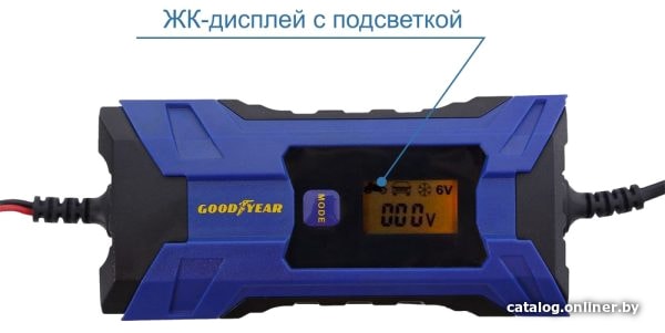 | Информация | Электронное зарядное устройство нового поколения Goodyear Smart обеспечивает простой и удобный заряд аккумуляторной батареи авто- и мототехники. Подходит для заряда стандартного аккумулятора любого типа (WET, MF, GEL, AGM) емкостью 3-120Ач (6V/12V) с максимальным оптимальным током 4А. Сложная многоэтапная система заряда, как по току, так и по напряжению, включающая режим восстановления АКБ, гарантирует 100% заряд батареи.Зарядное устройство Goodyear Smart оснащено защитой от перегрузки, неправильного подключения и короткого замыкания. Модель имеет ЖК-дисплей с понятной индикацией режима заряда, ошибок и степени заряда АКБ. Прибор автоматически проверяет напряжение аккумулятора и отображает данные на дисплее в процессе заряда.Goodyear Smart ЗУ имеет изолированные усиленные зажимы для подключения к аккумуляторной батарее.По завершении заряда устройство Goodyear Smart переходит в режим хранения, индуцируя полную зарядку АКБ. Таким образом, процесс заряда батареи можно не контролировать, а просто отключить устройство, когда индикатор покажет 100% заряд. |