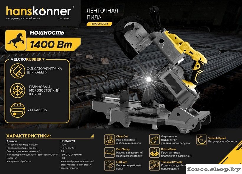 | Информация | - Ленточная пила– практичный и удобный инструмент для распила заготовок из металла и древесины. ###BR###- Пила способна обеспечить чистый и точный способ резки металла без искр. Торцы реза после ручной ленточной пилы чистые и гладкие. ###BR###- Модель оснащена регулятором оборотов для настройки инструмента к определенной задаче. ###BR###- Также пила обеспечена металлическим столом, позволяющим выбрать требуемый угол пиления, и быстрым зажимным механизмом, способным уверено фиксировать заготовку. ###BR###- При слабом общем освещении есть возможность воспользоваться встроенной светодиодной подсветкой. ###BR###- Сетевой кабель длиной 7 м позволяет свободно перемещаться с инструментом. |