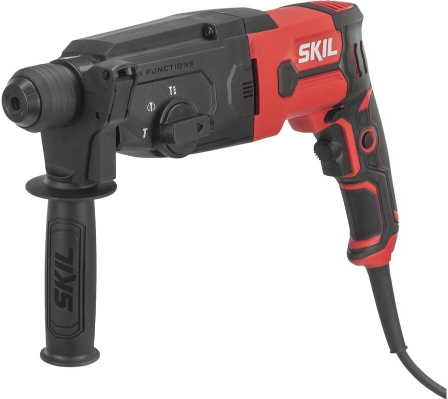 | Информация | Многофункциональный перфоратор с пневматическим ударным механизмом и четырьмя режимами работы SKIL RH1109 — это надёжный и мощный сетевой перфоратор с пневматическим механизмом и двигателем 850 Вт, предназначенный для эффективного бурения бетона диаметром до 26 мм, а также выполнения работ по кирпичу, дереву и металлу. Инструмент поддерживает 4 рабочих режима, включая долбление с фиксацией и без, сверление с ударом и без. Быстрая смена оснастки осуществляется с помощью системы SDS+, а комплектный адаптер с патроном 13 мм позволяет использовать стандартные сверлильные буры. Эргономичная прорезиненная рукоятка и регулируемая боковая рукоятка обеспечивают комфортное управление обеими руками. Регулировка оборотов и функция предварительного выбора скорости дают полный контроль при работе с разными материалами. Безопасность при заклинивании бура обеспечивает предохранительная муфта. Глубиномер позволяет точно задать глубину сверления при работе с «глухими» отверстиями. Инструмент поставляется в прочном кейсе с набором буров. |