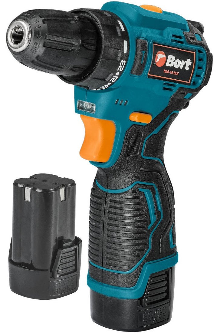 Дрель-шуруповерт Bort BAB-16-BLK 93414868 (с 2-мя АКБ, кейс)
