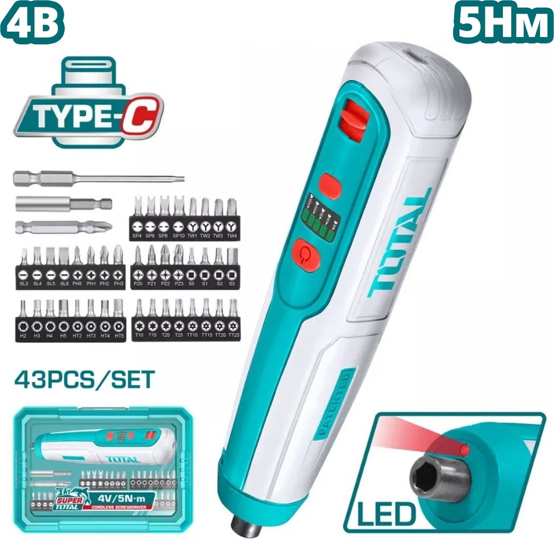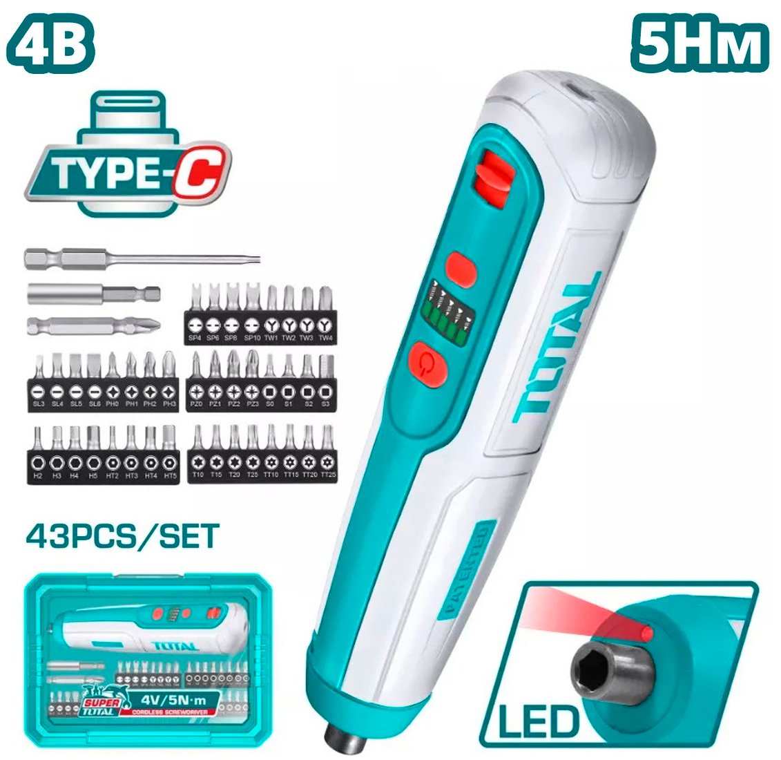 Электроотвертка Total TSDLI04062 (с АКБ, кейс)