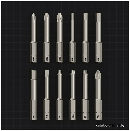 | Биты (насадки-отвертки) | Да 12 (Hex, Torx, Phillips, Pozidriv) (PH1/PH2/PH3/H3/H4/H5/H6/T15/T20/T25/PZ2) |