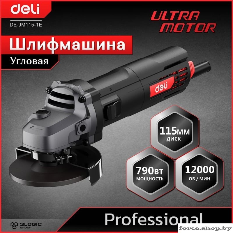 | Информация | - Углошлифовая машинка Deli DE-JM115-1E – это профессиональный инструмент, предназначенный для выполнения различных задач шлифования, резки и обработки материалов.###BR######BR###- Одним из ключевых достоинств является высокая мощность в 790 Вт, что обеспечивает эффективную работу даже при сложных задачах.###BR######BR###- Компактный тонкий корпус делает инструмент удобным для использования в труднодоступных местах, а диаметр диска 115 мм гарантирует точность и комфорт при работе с мелкими деталями.###BR######BR###- УШМ оснащена двигателем «Ultra Motor» – эксклюзивной запатентованной технологией от компании Delitools. Она обеспечивает повышенную мощность и эффективность, а также снижает уровень вибрации, что позволяет мастеру работать дольше без усталости и повышает качество выполнения задач.###BR######BR###- Для защиты от крупных и средних кусков строительного мусора УШМ оборудована съёмными пластиковыми фильтрами, а специальный лак защищает двигатель от пыли и мелкого мусора.###BR######BR###- Корпус редуктора выполнен из металла, что обеспечивает защиту внутренних узлов от механических повреждений и улучшает отвод тепла.###BR######BR###- Благодаря функции блокировки шпинделя замена оснастки происходит быстро и безопасно.###BR######BR###- Удобная дополнительная рукоятка обеспечивает надежный хват инструмента обеими руками. |