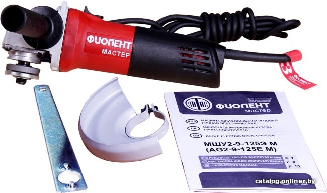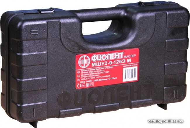| Комплект поставки | * Машина шлифовальная угловая МШУ2-9-125Э 1 шт.* Кожух 1 шт.* Ручка дополнительная 1 шт.* Ключ 1 шт.* Кейс 1 шт.* Руководство по эксплуатации 1 шт. |