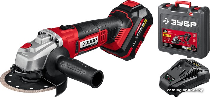Угловая шлифмашина Зубр УШМ-18-125-41 (с АКБ, кейс)
