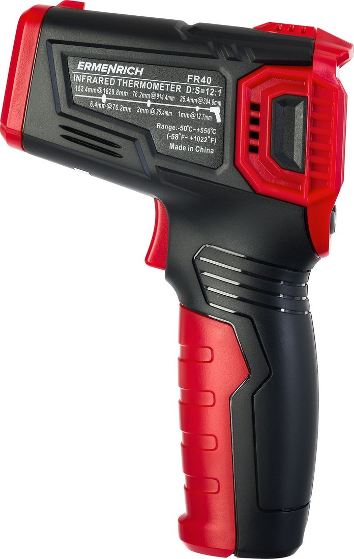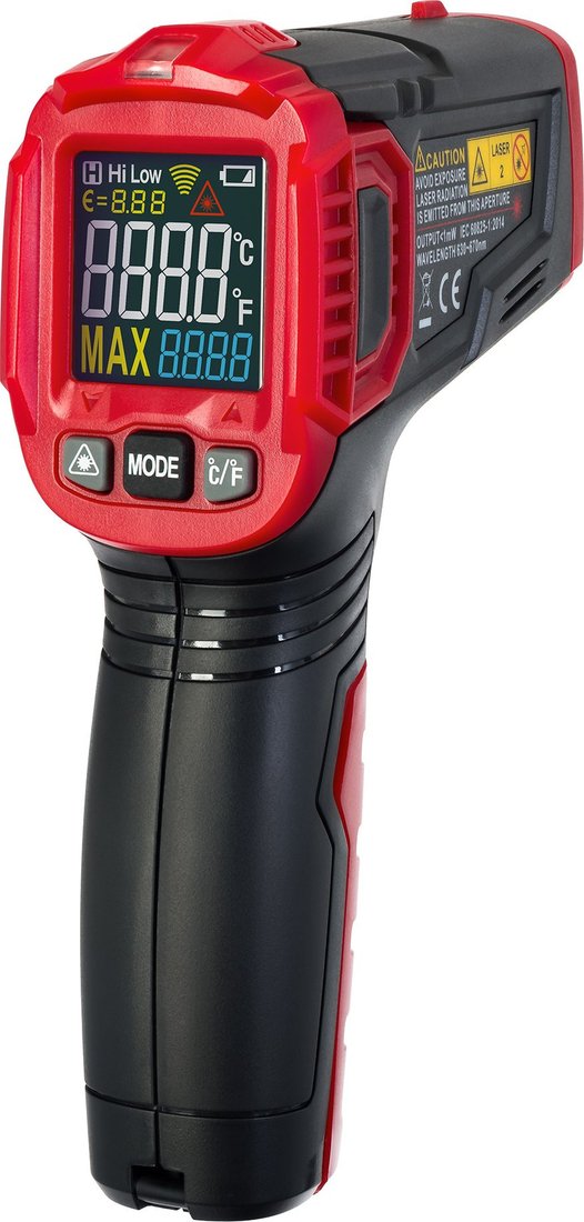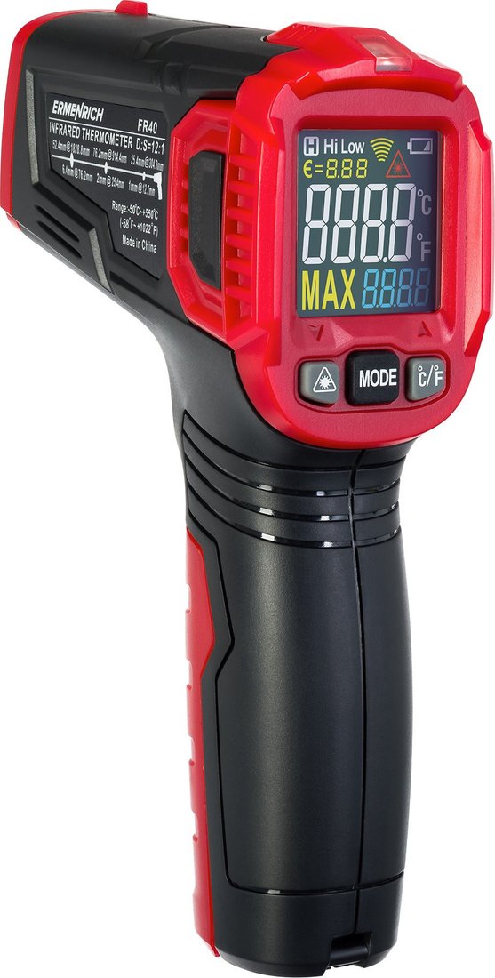 | Информация | - Бесконтактный термометр Ermenrich Seek FR40 позволяет точно измерять температуру тела, объектов или окружающей среды с помощью инфракрасного излучения. Это идеальное решение для ситуаций, когда физический контакт невозможен. - Пирометр охватывает широкий диапазон температур от –50 до +550 градусов по Цельсию и может отображать результаты в градусах по Фаренгейту. Измерение занимает всего 0,5 секунды, а при удерживании «курка» можно проводить непрерывные замеры. Результат фиксируется при отпускании кнопки, а также можно установить собственные минимальные и максимальные значения, при достижении которых прибор подает световой сигнал. - Для удобства использования термометр оснащен многоточечным лазерным указателем, что позволяет точно навести его на объект. Информация отображается на цветном экране, где также есть индикатор уровня заряда батареи. Прибор работает от двух батареек типа ААА (в комплект не входят) и автоматически отключается через 30 секунд для экономии заряда. - Основные особенности: • Бесконтактный инфракрасный термометр с цветным экраном и лазерным указателем • Измерение температуры от –50 до +550 °C • Время отклика – 0,5 секунды • Отображение температуры в °C и °F • Удержание показаний и запоминание максимальных значений • Лазерный указатель для точного наведения • Питание от батареек типа ААА, автоотключение и индикатор заряда |