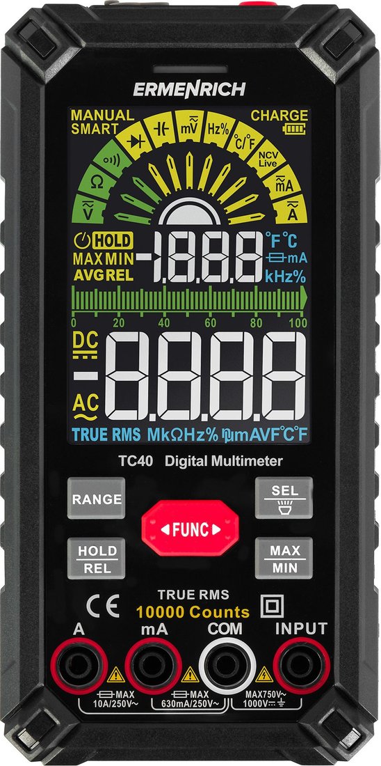 | Информация | - Цифровой мультиметр Ermenrich Zing TC40 — идеальный инструмент для измерения электрических характеристик и диагностики кабельных сетей. Он позволяет точно определять силу тока, сопротивление, частоту, емкость, рабочий цикл и температуру. Также может использоваться для прозвонки кабелей, выявления неисправностей диодов и определения фазы. Функция NCV помогает бесконтактно находить скрытую проводку в стенах или полу. - Прибор выполняет расчеты по методу истинных среднеквадратичных значений (True RMS), обеспечивая высокую точность. Вы можете измерять характеристики относительно сохраненного в памяти опорного значения, а результаты отображаются на цветном дисплее в числовом или графическом формате. Последнее измеренное значение фиксируется с помощью кнопки Hold, что позволяет просмотреть его позже. Устройство также сохраняет предельные значения (минимум и максимум) в памяти. - Корпус мультиметра выполнен из прочного пластика с ребрами по бокам, что предотвращает выскальзывание из рук. По размеру он сопоставим с мобильным телефоном, что позволяет удобно носить его в кармане. Встроенный фонарик освещает кабели или распределительные щитки. Питание осуществляется от литий-ионного аккумулятора, который можно заряжать через USB-кабель. Мультиметр Ermenrich Zing TC40 станет незаменимым помощником для профессиональных электриков, системных администраторов и специалистов по электросетям. - Основные особенности: • Цветной дисплей с цифровым и графическим отображением значений • Измерение силы тока, напряжения, сопротивления, емкости, частоты, рабочего цикла • Замер температуры с использованием встроенной термопары • Тестирование диодов на пробои и обрывы • Бесконтактное определение напряжения (NCV), поиск скрытой проводки, обнаружение фазы • Прозвонка кабелей для выявления обрывов в линии • Автоматическое измерение сопротивления и напряжения (функция Smart) • Относительное измерение по опорному значению • Питание от встроенного аккумулятора - Комплектация: • Цифровой мультиметр • Щупы • Чехол • Кабель USB для зарядки • Инструкция по эксплуатации и гарантийный талон |