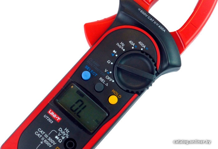 | Информация | UNI-T UT203 – это надежные цифровые токоизмерительные клещи. Способны измерять постоянный и переменный ток, напряжение, частоту и скважность. Так же токовые клещи способны тестировать диоды и проверять сеть на целостность. Надежный инструмент для профессионального использования.Основная задача данного устройства – это выполнение функций бесконтактного амперметра, то есть измерение постоянного и переменного тока. Но в отличие от большинства аналогов, данная модель способна выполнять и ряд других функций. Благодаря такой универсальности UT203 сфера применения токовых клещей значительно расширяется.Автоматический выбор диапазонов измерений. Токовые клещи UNI-T UT203 обладают функцией автоматического выбора диапазонов измерений. Для проведения работ достаточно выставить переключатель режимов в положение необходимой величины.Автоматическое отключение. Данная функция автоматически отключает питание прибора при длительном бездействии. Это позволит сэкономить заряд батареи.Многофункциональные цифровые токовые клещи модели UT203 – это надежный измерительный прибор с 3? разрядным дисплеем. В устройстве используется большой набор интегральных схем с двойным аналого-цифровым преобразователем в качестве ядра. Прибор оснащен защитой от перегрузок в широком диапазоне. Данные токовые клещи соответствует стандартам IEC61010, согласно которым имеет следующие показатели: допустимая степень загрязнения 2, категории перенапряжения II - 600В, III - 300В, двойная изоляция. |