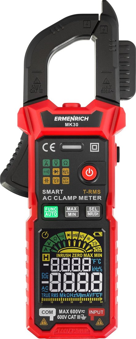 | Информация | - Ermenrich Ping MK30 – это универсальный измеритель (токовые клещи), который позволяет определять силу тока, напряжение, сопротивление, частоту, емкость и рабочий цикл. Измерение тока происходит без размыкания электрической цепи, что делает его гораздо удобнее, чем традиционные амперметры. Клещи также оснащены функциями прозвонки кабелей для поиска обрывов и коротких замыканий, проверки состояния диодов, бесконтактного определения напряжения и фазы. - Прибор способен измерять переменные величины по методу истинных среднеквадратичных значений (True RMS) с высокой точностью. Автоматическое измерение напряжения и сопротивления (функция Smart) упрощает процесс работы. Результаты отображаются на цветном дисплее с числовыми значениями (6000 отсчетов) и графической шкалой. Вы можете удерживать последний результат на экране для дальнейшего анализа и сохранять минимальные и максимальные значения в памяти устройства. - Клещи Ermenrich Ping MK30 имеют компактные размеры и легкий вес. Корпус выполнен из прочного пластика с оребрением для удобного захвата. Прибор работает от 3 батареек типа AAA (в комплект не входят). При низком уровне заряда срабатывает светодиодный индикатор. Если прибор не используется в течение некоторого времени, он автоматически отключается, что помогает экономить заряд. - Основные особенности: • Замеры тока, напряжения, сопротивления, емкости, частоты и рабочего цикла • Измерение температуры • Высокая точность благодаря методу True RMS • Прозвонка кабелей и поиск обрывов • Тестирование диодов и определение фазы • Автоматическое измерение напряжения и сопротивления • Фиксация результатов и сохранение значений в памяти • Автоматическое отключение для экономии заряда - Комплектация включает: • Токоизмерительные клещи • Щупы • Чехол • Инструкция по эксплуатации и гарантийный талон |