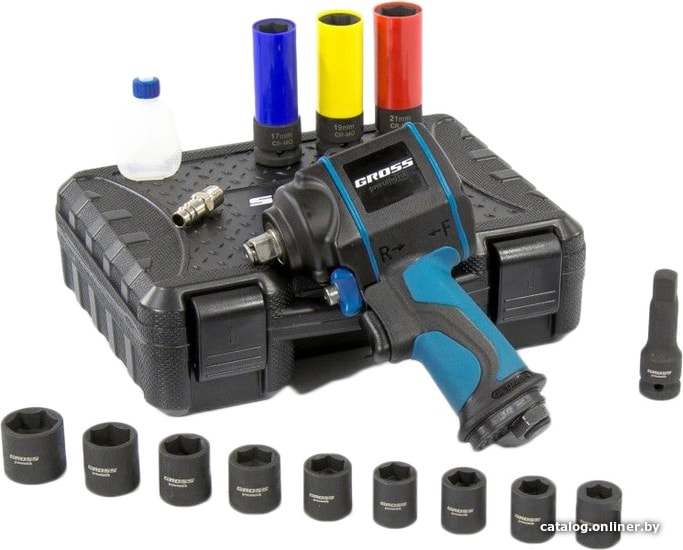 | Комплектация | - Пластиковый кейс- Набор ударных торцевых головок (размеры: 13;14;15;16;17;18;19;21;24 мм), удлиненных торцевых головок (размеры: 17;19;21 мм). |
