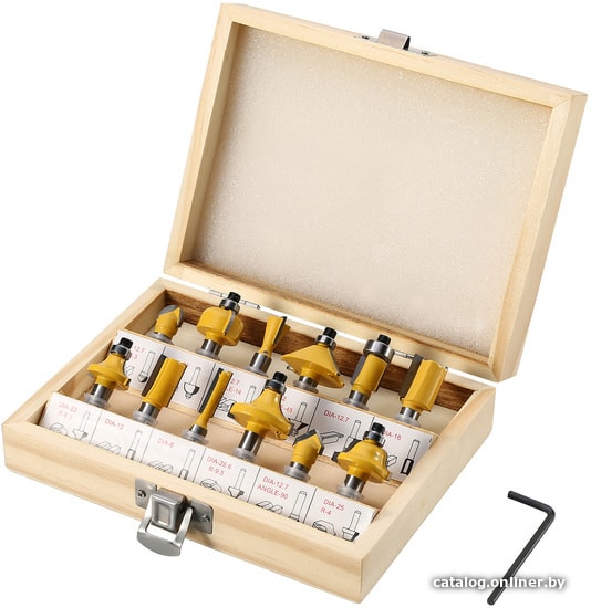 | Комплектация | Пазовая галтельная фреза DIA-12.7, R-6.3Пазовая конструкционная фреза «ласточкин хвост» DIA-12.7, ANGLE-14Пазовая прямая фреза DIA-16Пазовая прямая фреза DIA-12Пазовая прямая фреза DIA-6Пазовая V-образная фреза DIA-12.7, ANGLE-90Кромочная калевочная фреза DIA-22, R-6.3Кромочная калевочная фреза DIA-32, ANGLE 45Кромочная прямая фреза DIA-12.7Кромочная калевочная фреза DIA-22, R-6.3Кромочная калевочная фреза DIA-28.6, R-9.5Кромочная калевочная фреза DIA-25, R-4Шестигранный ключ 2,5 мм |