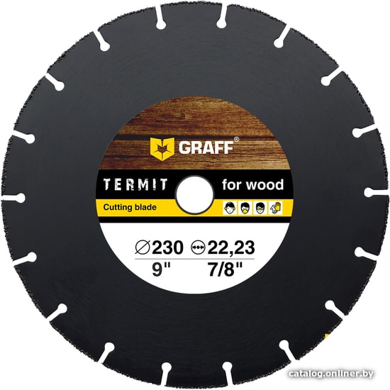 | Информация | Отрезной диск по дереву для УШМ (болгарки) GRAFF Termit 230 мм с карбид-вольфрамовой посыпкой. Применяется для обработки дерева, дерева с гвоздями, пластика, ламината, а также различных строительных материалов.- Отрезной диск специально разработан для резки дерева на высоких оборотах.- Чистый и тонкий рез благодаря минимальной толщине пропила 2 мм. |