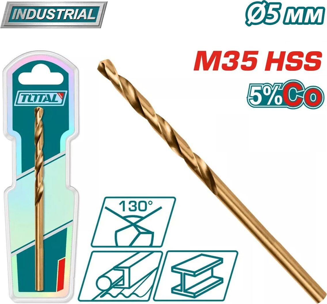 | Информация | Сверло по металлу M35 HSS-CO 5мм TOTAL TAC11205001 |