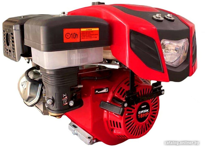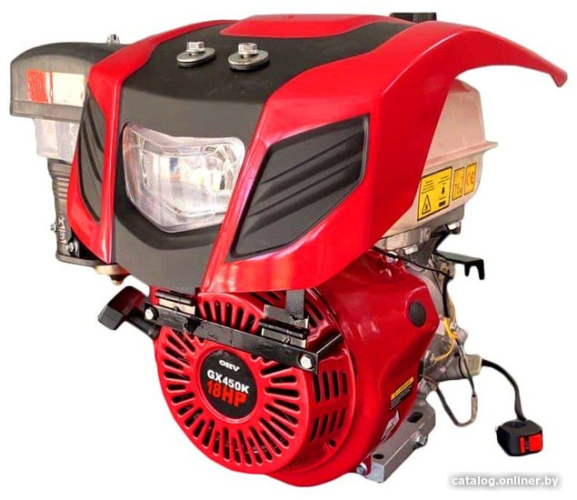 | Информация | ? Бензиновый двигатель модели GX450E воздушного охлаждения с электростартером, OHV, мощностью 18 л.с., гильзованный, моторесурc не менее 3500 моточасов. ? Рекомендуется для установки на минитракторы и мотоблоки «Беларус», генераторы и другую технику. ? Встроенная система аварийного отключения двигателя при низком уровне масла. |