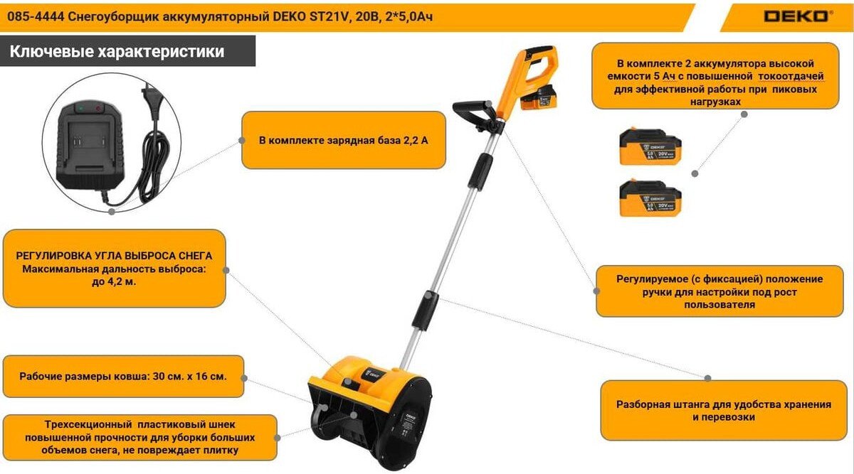 Снегоуборщик Deko ST21V 085-4444 (с 2-мя АКБ)