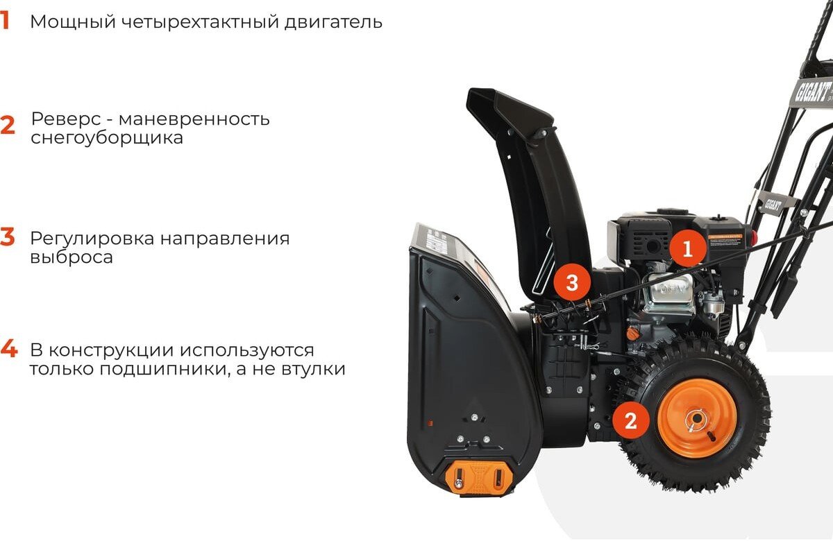 | Информация | -Бензиновый снегоуборщик Gigant SP-7-560MS - это полупрофессиональная техника для быстрой и эффективной очистки территорий от снега возле дома, дачи или парковки. Модель оснащена мощным 4-тактным двигателем Gigant SR210 и реализует двухступенчатую систему шнеков, благодаря чему легко справляется даже с плотным, слежавшимся или обледеневшим снегом. -Широкий ковш 56?50 см позволяет за один проход захватывать большую площадь, что ускоряет процесс уборки. Снегоуборщик самоходный, с 6 скоростями вперед и 2 назад, обеспечивая отличную маневренность даже в условиях глубокого снега. Дальность выброса снега достигает 10-12 метров, а направление выброса регулируется поворотным желобом на 190°. -Особенности модели включают использование подшипников вместо втулок, что увеличивает ресурс работы, а также бронзовую шестерню редуктора шнека. Глубокий протектор колес обеспечивает надежное сцепление с поверхностью, а емкость топливного бака 2.3 л позволяет убирать небольшие участки без дозаправки. -Снегоуборщик легко собирается, комплектуется лопаткой для прочистки желоба и подробной инструкцией. Несмотря на отсутствие воздушного фильтра, двигатель надежно запускается даже при температуре до -35°C. Это отличный выбор для владельцев частных домов, которым нужна надежная и мощная техника для зимней эксплуатации. |