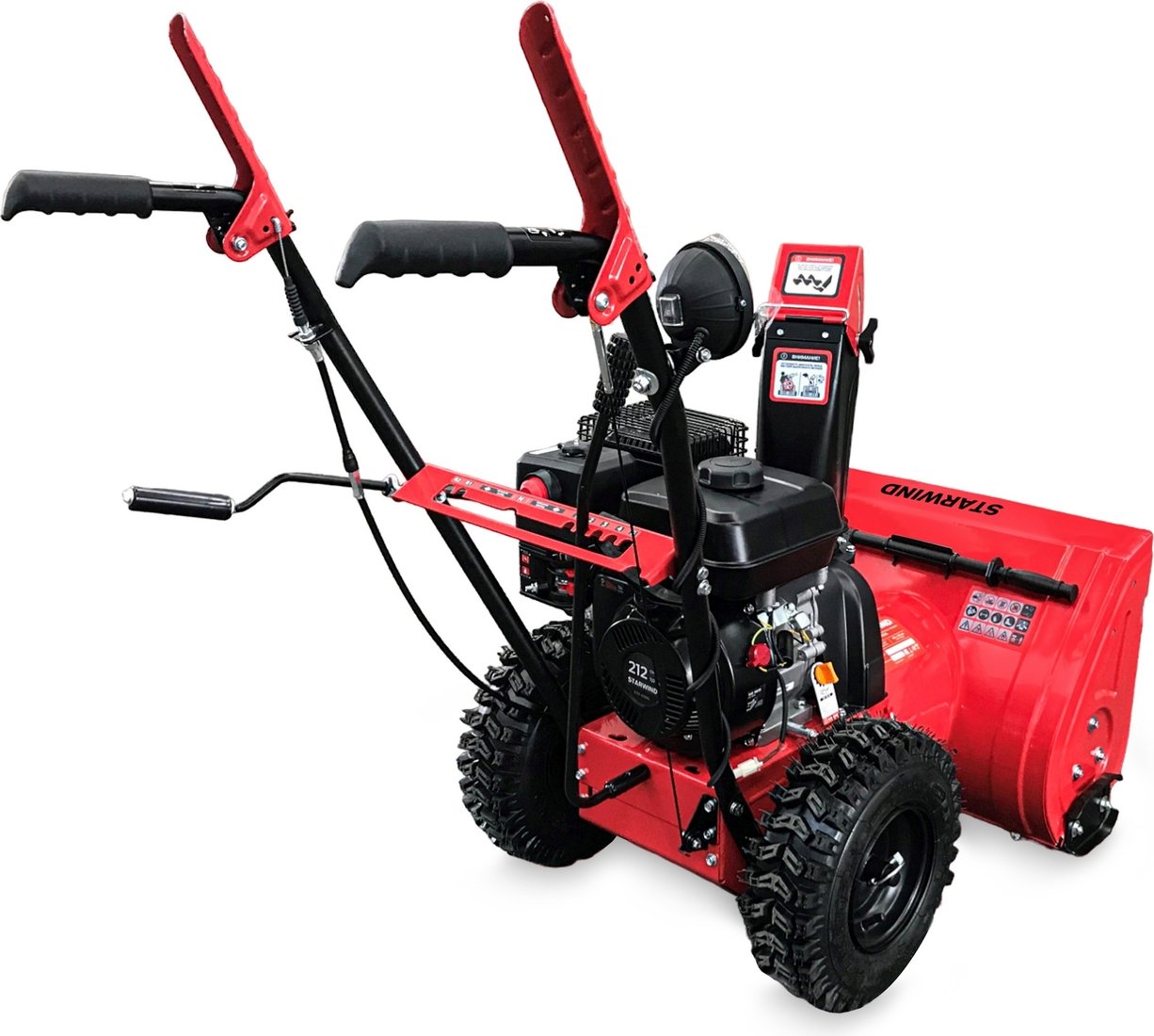 | Информация | Самоходный бензиновый снегоуборщик STARWIND GST-4356L поможет оперативно очистить от снежного покрова придомовую территорию, автомобильную парковку, тротуары или дорожки.###BR######BR###Снегоуборщик оснащен надежным 4-тактным бензиновым двигателем мощностью 7 л.с., что обеспечивает выброс снега на расстояние до 15 м. В конструкции двигателя предусмотрен праймер для быстрого и легкого запуска. Тип стартера – ручной.###BR######BR###Модель GST-4356L имеет 2 рычага управления: для включения шнека и для включения привода на колеса. Для комфортной эксплуатации снегоуборщика предусмотрено 7 скоростей движения: 5 вперед и 2 назад.###BR######BR###Ширина захвата снега – 56 см, высота захвата снега – 43 см. Благодаря поворотному желобу, Вы можете регулировать поворот направления выброса снега до 190 градусов. А встроенный блок фары позволяет очищать участок от снега даже в темное время суток.###BR######BR###Снегоуборочная машина STARWIND GST-4356L оснащена надувными колесами с продуманным протектором, позволяющим снегоуборщику не скользить на снеге и льду.###BR######BR###Двухступенчатая система шнеков с металлическими лопастями легко измельчает даже слежавшийся и примерзший снег.###BR######BR###Гарантия на садовую технику STARWIND составляет 2 года.###BR######BR###Сделайте уборку снега быстрой и легкой со снегоуборочной техникой STARWIND. |