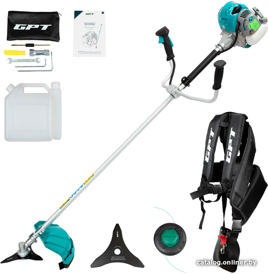 | Комплектация | Двигатель с правой рукояткой Левая рукоятка Втулка соединительная рукояток Защитный кожух Набор ключей для сборки и обслуживания Набор креплений для сборки Емкость для приготовления топливной смеси Триммерная катушка Разгрузочный ремень Руководство по эксплуатации 3-лопастной нож (опционально) Штанга с чашкой сцепления и редуктором |