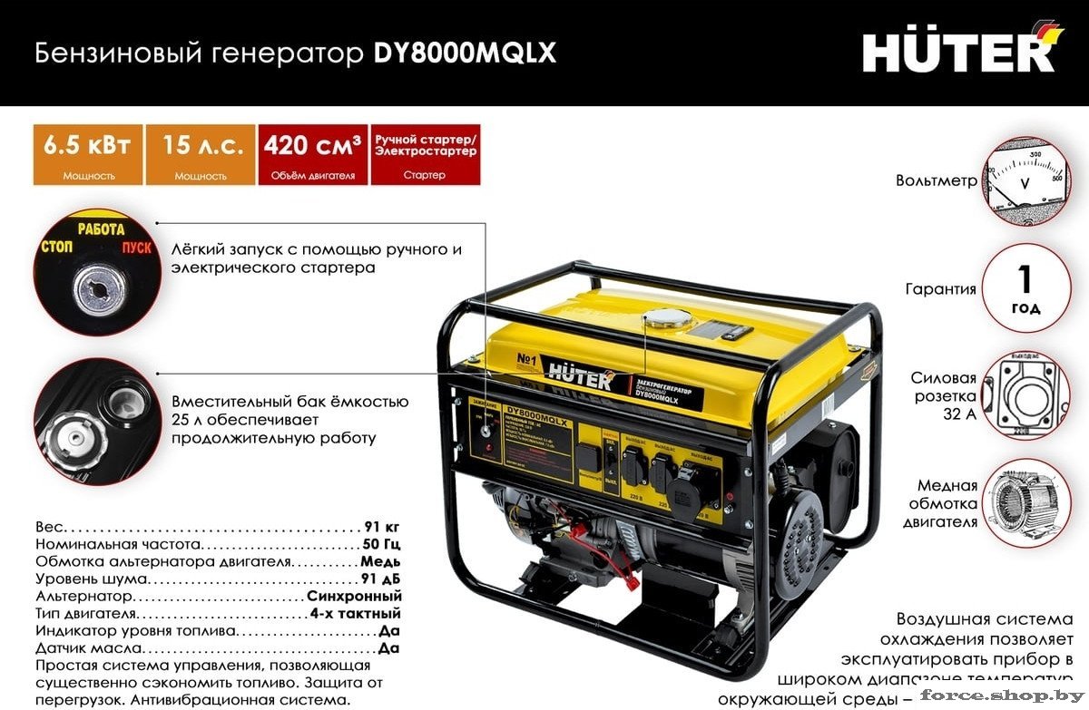 | Информация | - Бензиновый электрогенератор Huter DY8000MQLX 900/64/1/60 обеспечивает возможность получения электрической энергии в любых условиях. Он оснащён одноцилиндровым 4-тактным поршневым двигателем, который отличается высоким качеством и прочностью материалов.###BR######BR###- Для преобразования механической энергии в электрическую используется экономичный бензиновый двигатель. Запуск осуществляется с помощью электрического стартера, что делает эксплуатацию генератора более удобной. Уровень шума при работе составляет всего 91 дБ, что довольно низко для устройства такой мощности.###BR######BR###- Генератор оборудован бензобаком, вмещающим 25 литров топлива, что обеспечивает длительную работу без необходимости частой заправки. - Обратите внимание на правильное использование и обслуживание для обеспечения долговечности устройства. |