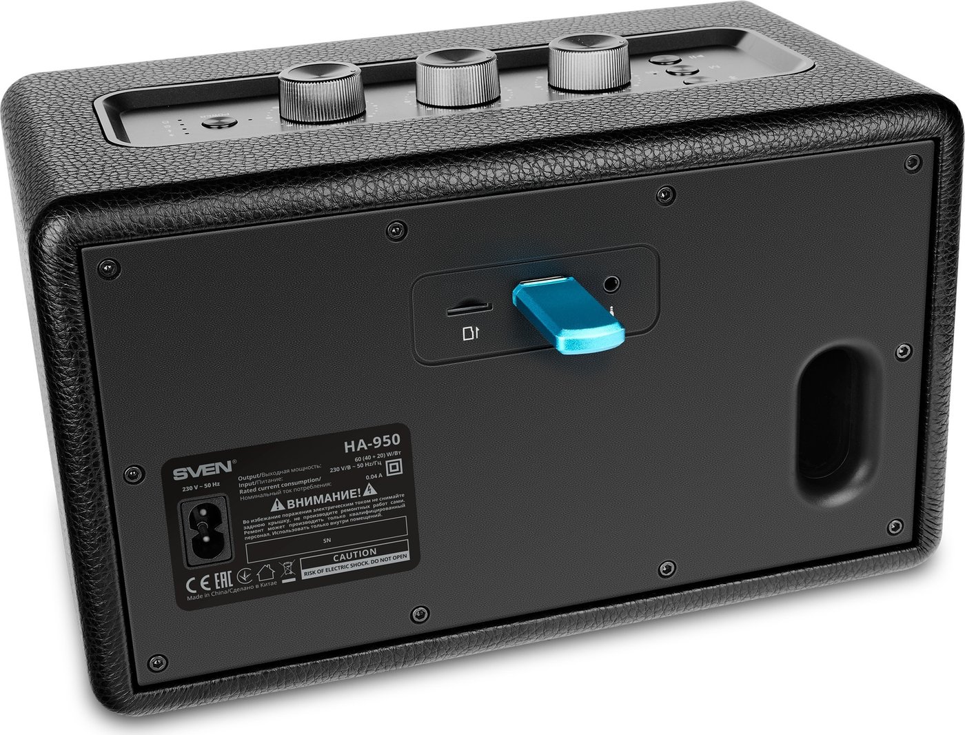 | Информация | - HA-950 станет не только источником качественного звука, но и приятным дополнением любого интерьера. Своим видом она очень напоминает классические гитарные комбоусилители, а внешняя отделка корпуса из экокожи крайне приятна как внешне, так и на ощупь. Удобная панель управления с регуляторами громкости и тембра дополняет образ с нотками ретро.###BR######BR###- При этом внутри корпуса собраны самые передовые технологии, в том числе и те, что раньше практически не встречались в устройствах не только SVEN, но и других производителей. Например, к HA-950 можно подключить с помощью Bluetooth сразу два смартфона или других гаджета и попеременно проигрывать с них треки без необходимости переподключения. Пригодится как семейным парам, которые смогут удобно делиться друг с другом любимой музыкой, так и в разгар дружеской вечеринки. Можно и наоборот — подключить по Bluetooth две HA-950 к одному источнику, чтобы добиться ярко выраженного стереоэффекта и полностью озвучить даже большую комнату.###BR######BR###- Ну и, конечно, всегда есть простой и надежный вариант проводного подключения источника звука — вход Aux также предусмотрен. В частности, это позволяет подключить к SVEN HA-950 оснащенные линейным выходом смарт-колонки, чтобы значительно повысить качество выдаваемого звука, сохранив при этом возможность взаимодействия с голосовым ассистентом. Ну а если внешнего источника звука нет – это тоже не повод оставаться без любимой музыки. Встроенный в HA-950 плеер может воспроизводить аудиофайлы с USB-накопителей и SD-карт.###BR######BR###- За уровень громкости можно не беспокоиться — общая выходная мощность SVEN HA-950 достигает 60 Вт, а за качество звука отвечают сразу два динамика: низкочастотный диаметром 96 мм и высокочастотный диаметром 22 мм. Вместе им удается обеспечить отличный звук в широком частотном диапазоне — от 70 Гц до 20 кГц. Устройство получилось не только громким и красивым, но и максимально удобным в использовании. Управление всеми функциями возможно не только с помощью регуляторов на верхней панели, но и с помощью идущего в комплекте компактного дистанционного пульта с отлично продуманной эргономикой. - |
