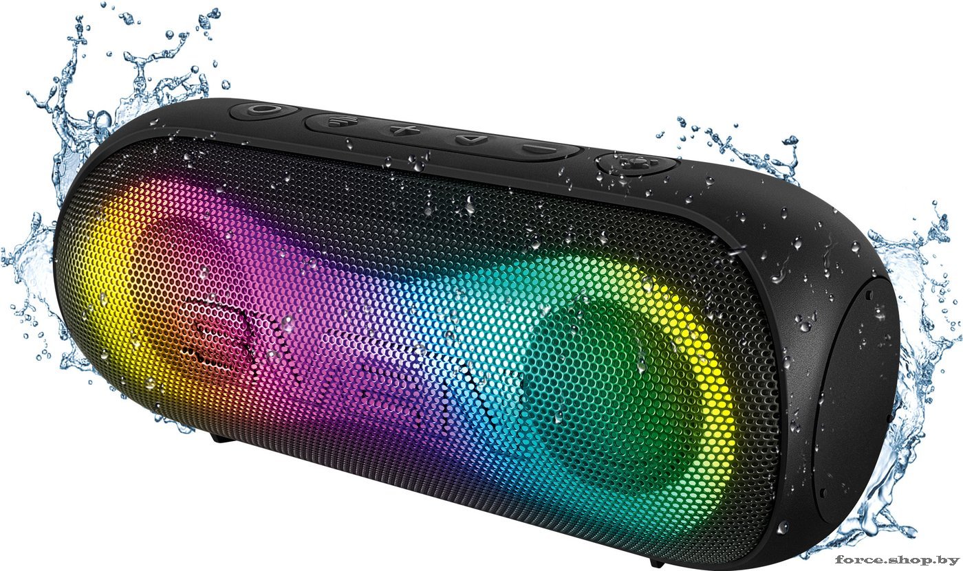 | Информация | - Беспроводная передача сигнала по Bluetooth ###BR###Передача звука через Bluetooth обеспечит удобное и устойчивое подключение к гаджету-источнику сигнала без проводов на значительном расстоянии.###BR######BR###- Не боится ни капель, ни струй воды ###BR###Струи воды, попадающие на колонку под любым углом, не окажут вредного воздействия на прибор. Она не боится капель дождя, случайных брызг или даже струи воды из шланга.###BR######BR###- Свет и звук в полной гармонии ###BR###Отключаемая динамическая RGB-подсветка с несколькими вариантами свечения прекрасно дополняет насыщенное звуковое сопровождение.###BR######BR###- В два раза больше звука и позитивных эмоций ###BR###Соедините по беспроводному каналу две колонки и создайте стереопару на основе TWS-технологий и ВАШУ вечеринку запомнят надолго! Мощный широкоформатный стереозвук создаст незабываемые музыкальные образы!###BR######BR###- Встроенный плеер для коллекции любимых треков ###BR###Подборка любимых мелодий на microSD карт памяти — прекрасный вариант для меломанов, уже сделавших свой выбор. Стабильное воспроизведение аудиофайлов без подключения дополнительных устройств!###BR######BR###- Универсальный ремешок для переноски ###BR###Компактный ремешок для переноски делает колонку еще более мобильной. Вы легко сможете носить ее в руке, подвесить к рюкзаку или элементам одежды во время походов и путешествий. Наслаждайтесь музыкой и впечатлениями где бы вы не оказались.###BR######BR###- Два положения для отличного звука ###BR###В вертикальном положении колонка занимает меньше места, а в горизонтальном позволяет добиться яркого стереоэффекта. Выбрать можно любое, так как ножки размещены на дне и боковой стенке колонки. |