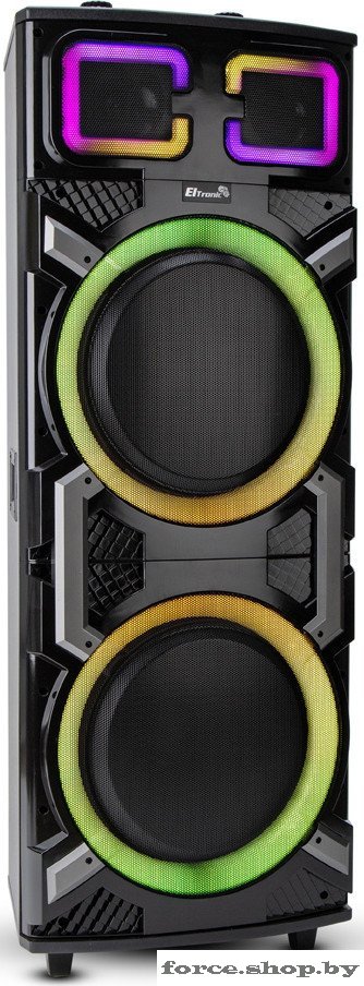 | Информация | - ElTRONIC 30-42 CRAZY BOX — это мощная акустическая колонка для вечеринок, оснащенная двумя 15-дюймовыми динамиками, обеспечивающими насыщенный и глубокий звук с общей номинальной мощностью 200 Вт и поддержкой стереопары по технологии TWS. Благодаря встроенному аккумулятору на 12000 мАч и возможности работы от сети 220В, колонка подходит как для домашних мероприятий, так и для выездных праздников.###BR######BR###- Устройство поддерживает воспроизведение музыки через Bluetooth, а также с внешних накопителей USB, microSD и SD-карт, что обеспечивает универсальность в выборе источников звука. Для любителей живого исполнения предусмотрены отдельные входы для микрофона и гитары (6.3 мм), что делает колонку отличным выбором для караоке-вечеринок и музыкальных выступлений.###BR######BR###- CRAZY BOX оборудована LED-подсветкой динамиков, встроенным эквалайзером и возможностью записи звука. Для удобства транспортировки предусмотрены встроенная ручка и колеса рояльного типа, а информативный дисплей помогает отслеживать режимы работы и настройки устройства.###BR######BR###- В комплекте с колонкой идут два беспроводных микрофона, а также пульт дистанционного управления, кабель питания и AUX-кабель. Дополнительные функции, такие как режим усиления басов и поддержка стереосинхронизации двух колонок, делают ElTRONIC 30-42 CRAZY BOX оптимальным решением для крупных мероприятий, музыкальных вечеринок и выездных праздников. |