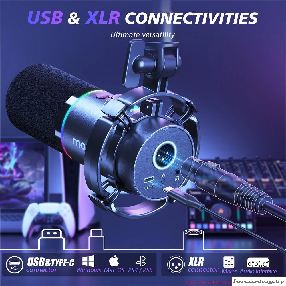 | Информация | - Микрофон Maono PD200XS с встроенной динамической микрофонной капсулой, которая улавливает глубокие низкие, деликатные высокие и четкие средние тона.###BR######BR###- Сверхширокая частотная характеристика 40–16 кГц обеспечивает кристально чистый и чистый звук, а кардиоидная диаграмма направленности подавляет любой нежелательный фоновый шум при записи и потоковой передаче.###BR######BR###- Интеллектуальная ручка 2-в-1 для регулировки усиления микрофона и громкости наушников, кнопка отключения звука одним нажатием со светодиодным индикатором позволяет мгновенно отключить звук.###BR######BR###- Подключение к настольному компьютеру или ноутбуку напрямую через USB-кабель, а также аналоговый выход XLR для подключения ко всем профессиональным интерфейсам, микшерам или портативным акустическим системам. |